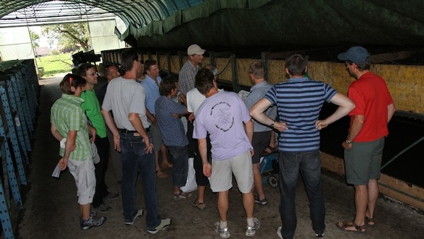 Anschliessend fuhren wir nach Aeschi auf den Bio-Hof von Hans Fuhrer. Dort besichtigten wir die Produktion von Naturdünger im Wurmstall. Dabei wandeln Regenwürmer in einer speziellen Konstruktion den vorverotteten Kuhmist zu hochwertiger Wurmerde um.