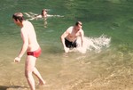 Anstelle eines kühlen Bieres entschlossen wir uns, auf dem Schnitzerweg zum Hinterburgseeli zum spazieren (45 min). Dort trauten sich doch einige Unerschrockenen ins erfrischende Nass. Guido war so aufgeheizt, dass er einen Köpfler machte und erst später bemerkte, dass er seine Brille beim Sprung verloren hatte. Wir versuchten noch gemeinsam, das gute Stück auf dem Grund zu erblicken. Doch blieben wir erfolglos.
