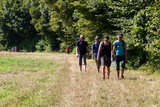 Nach einer guten Nacht in unseren Holzfässern genossen wir das herrliche Frühstücksbuffet. Pius tat sich schwer, die Meute zum geplanten Zeitpunkt zu mobilisieren und so starteten wir um 09:15 Uhr zu unserer gut drei stündigen Wanderung entlang der Weinberge des Klettgaus. Wir folgten dem Weg zurück nach Hallau wo wir beim Vorderern Berghof Richtung zur deutschen Grenze abbogen. Dem Grenzverlauf folgend, erreichten wir mit etwas Verspätung und ziemlich ausgetrocknet das Restaurant Napoleon in Stühlingen DE. Dort warteten bereits Martina und Guido zum Mittagessen auf uns.